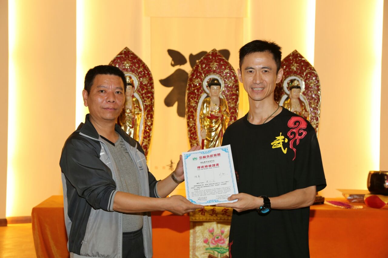 禪修課程完畢,由少林寺武術館中心主任,得軍老師頒發證書